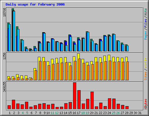 | Day | Hits | Files | Pages | Visits | Sites | KBytes | ||||||