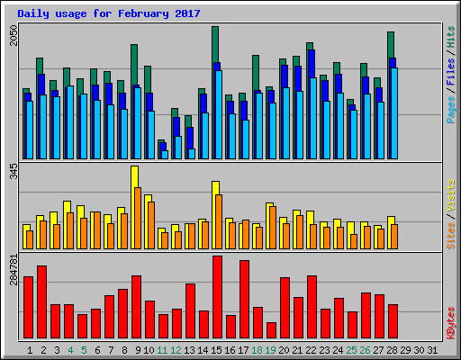 | Day | Hits | Files | Pages | Visits | Sites | KBytes | ||||||